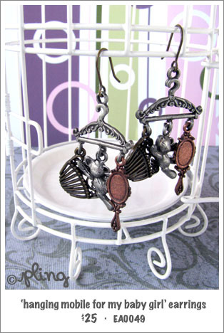 This hanging mobile is oh-so-adorable! It has everything a baby girl (or your little princess) wants – a comb, a teddy bear and a mirror! Perfect for those with autumn skin tones, these earrings sway interestingly as you clad yourself in the colors of grey, mustard yellow or browns.