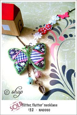 Like a butterfly to a flower garden, watch for envious eyes when you adorn this winged beauty! A tiny patchwork butterfly calls out to you with a length of red and white laced flowers fluttering towards a tiny pink metal charm. This necklace goes extremely well with a white tee, checkered skirt or outerwear that’s so hot now. Match your outfit with plain black or black pumps. Vive la France!