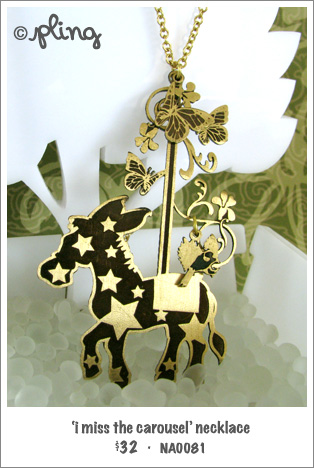 L 44.5cm • Rocking horse pendant L 8cm W 4.5cm • Fixed length • Dark gold chain