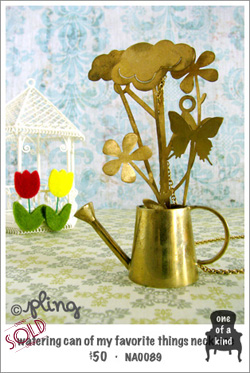 Flaunt it! Tell the world what you love! With this vintage looking watering can that’s simply sprouting out all those simple but amazing things in life – clouds that are constantly changing their shapes & colors, flowers that stand tall despite the wind and butterfly with its beautiful patterns. Definitely not for the faint-hearted, this 3-D necklace makes a bold statement!