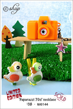 *LIMITED EDITION* When you’re scratching your head and wondering what photo to take next, perhaps you can take a look into this kitschy orange toy camera to stir up a cauldron of ideas! This truly retro gem contains 8 pictures of nature (eagles, cheetahs etc) that changes with every click of the camera! Paparazzi, watch out!