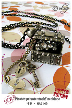 *SOLD* Ahoy Matey! A treasure chest of precious jewels, and a wish come true! Open it up with the secret key and the treasure is yours to keep!
