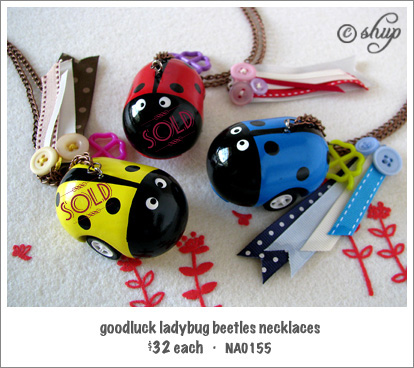 L 41.5 cm • Wooden goodluck ladybug beetle pendant L 5cm H 3cm • Adjustable length • Dark copper link chain