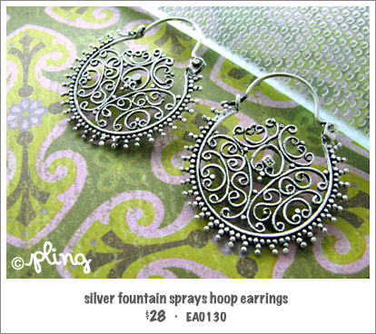 These 925 earrings resemble water sprays sprouting from an ornate Renaissance fountain with its swirls and starbursts around the hoops. Don them with a simple top or tank and you’re all dressed!