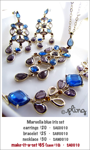 Fit for a present-day royalty, you’ll feel like a princess whenever you select this luxe set to adorn your attire. These plum iris and cobalt blue sparkles, set in glamorous gold, is just the beginning. The design flows randomly with teardrops and squares, finding the charming light as your every movement. Its twin shades of rich blue and deep purple coalesce and are perfect to glam up your evening.