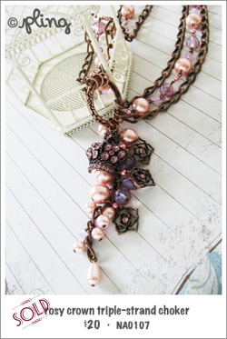Elaborate. Sweet. And definitely not for the faint-hearted. Unshamelessly pink, this triple-strand choker combines the gleaming shades of bronze with romantic rose charms, pink pearls and a sparkling pink crown amidst the cluster that lies on your chest.