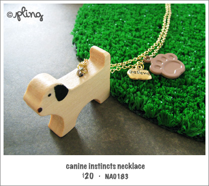 L 38.8cm • Natural wooden dog pendant H 3cm L 4cm W 0.75cm • Adjustable length • Gold link chain