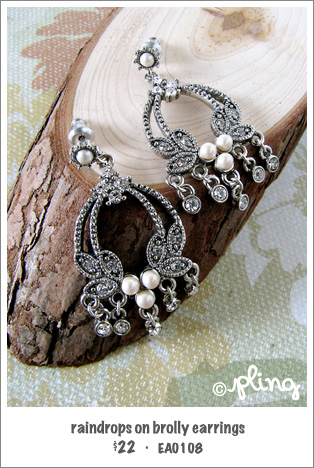 These dainty earrings remind me of those lace parasols that ladies in Jane Austen era take on their walks in the parks. With surgical steel posts, they feature sparkling diamantes and seed pearls that are sure to bring a gleam to your eyes.