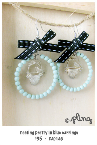 Inspired by walks along the Seine in Paris and sweet afternoon teas on the sidewalks, this pair of earrings embrace the romantic in you. Aqua blue beads form a hoop around a bird perched on the edge of its nest, singing a lovely tune to the beautiful day.
