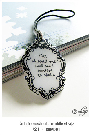 Stressed? Best to vent (and not get wasted) with a handmade acrylic mobile strap that says just that. Get it out! Express yourself and you’ll feel better in a while.