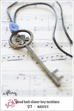 Centred within the circular top of this vintaged silver skeleton key is a matt silver four leaf clover, summoning Lady Luck to stand by you as you give your best in the pursuit of your dreams. A beguiling buttercup blue poppy rests above the key and clover, adding sweetness to your hard work.