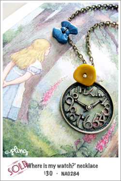 ‘Oh dear! Oh dear! Where’s my watch? It’s right there, near the poppy flower and your favorite navy blue ribbon.’